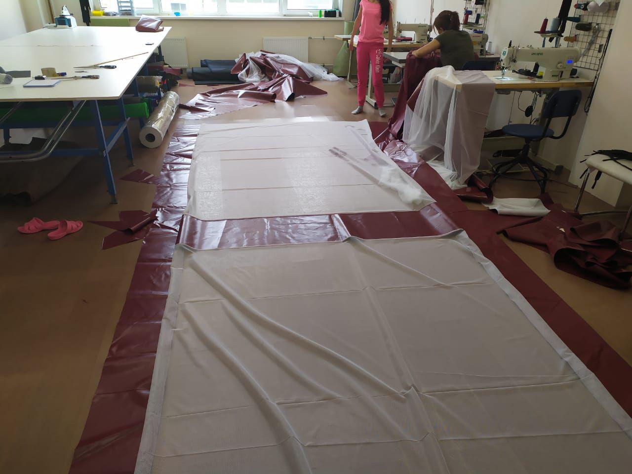 Швейная фабрика, производит в розницу и оптом на заказ с доставкой по России, предлагает широкий ассортимент тентов, чехлов, подушек, мешков и других текстильных изделий.