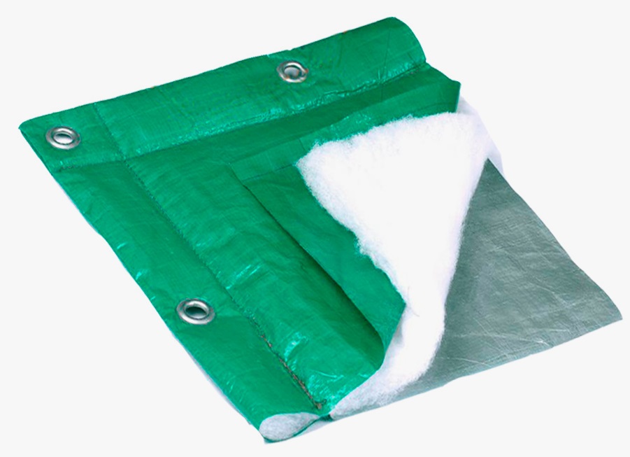 Тент термомат тарпаулин 300, 400 (утеплитель: изолон 5 мм) используется для поддержания оптимального температурного режима в зимний период (особенно при низких температурах). Широко применяется на производственных участках, при строительстве монолитно-бетонных объектов, укладки асфальта.Особенности